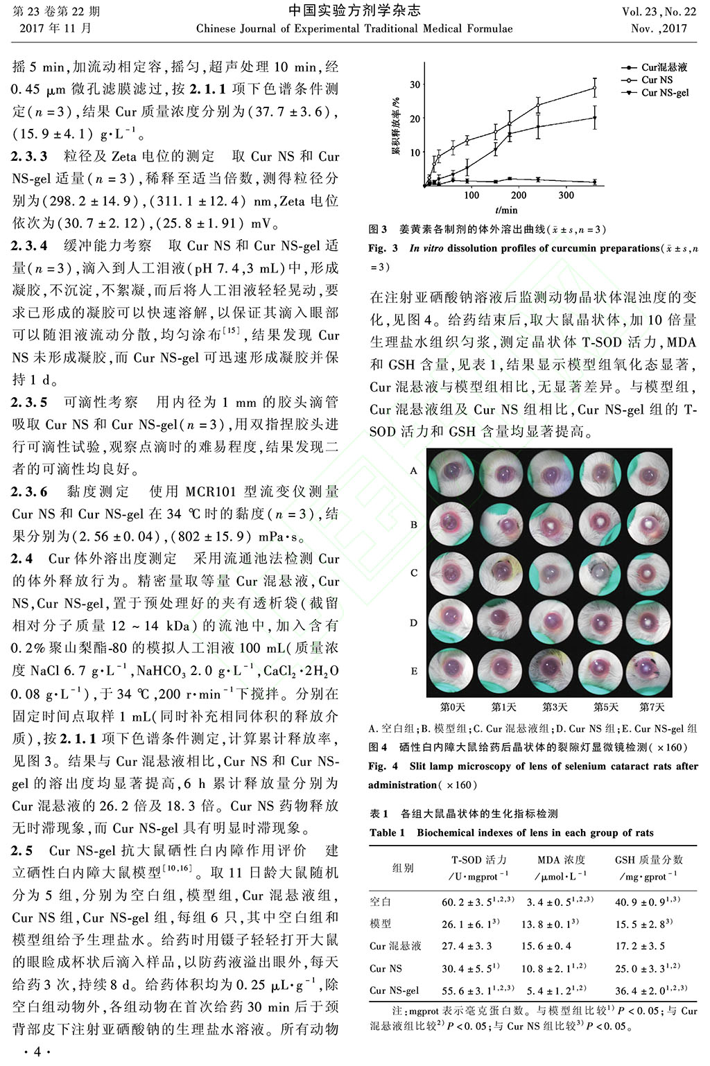 姜黃素眼用納米混懸凝膠劑對大鼠硒性白內(nèi)障的治療作用_李翔_劉亞麗_張鵬_季苗苗_