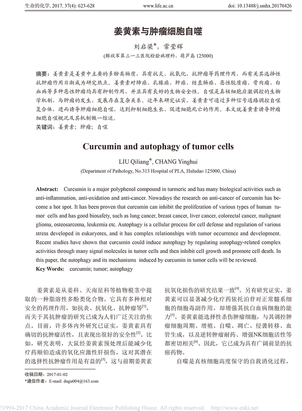 姜黃素與腫瘤細胞自噬_劉啟梁